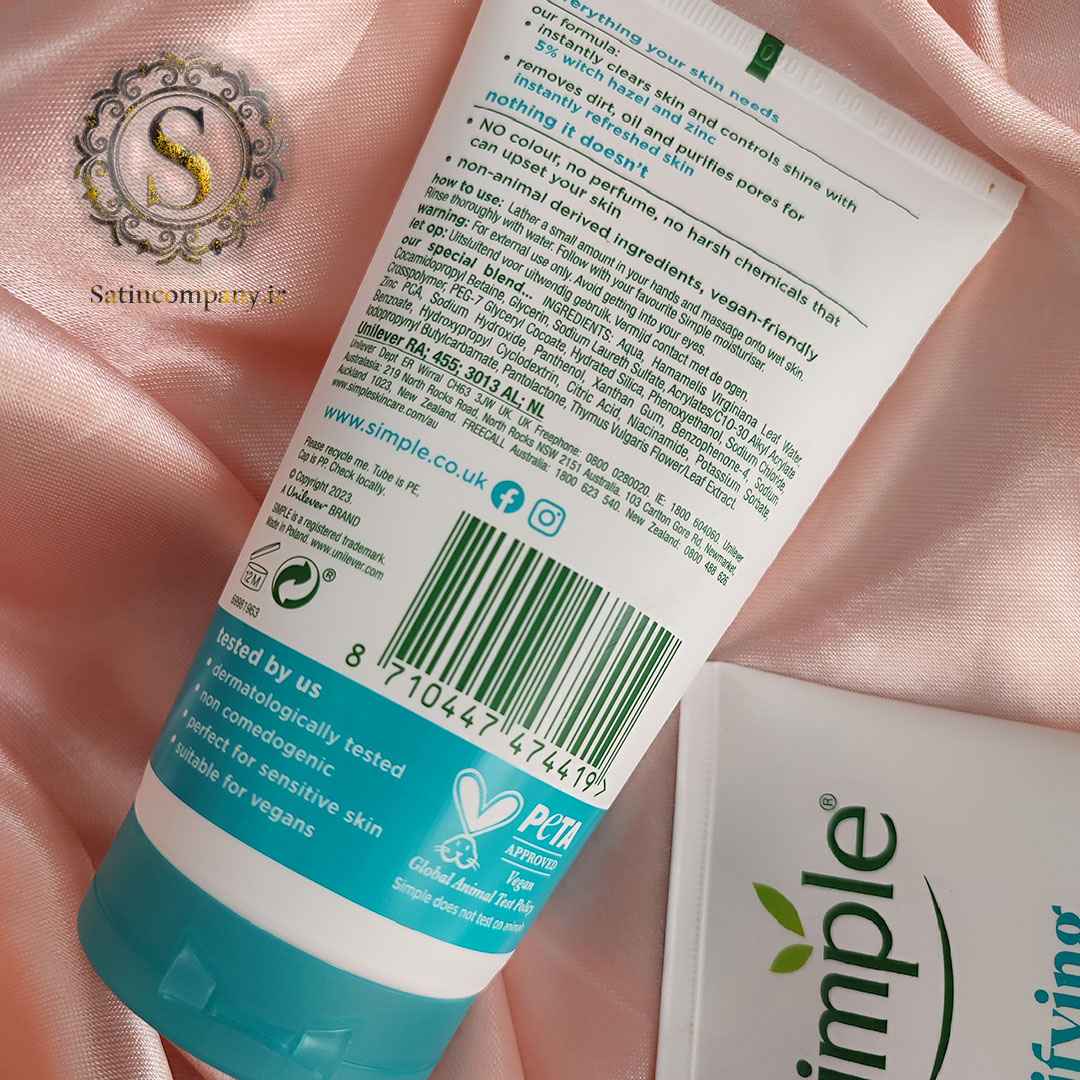یکی از نقاط قوت محصولات برند Simple این است که معمولاً با پوستهای حساس سازگار هستند. این شوینده هم در بسیاری از افراد باعث قرمزی یا تحریک نمیشود (البته بهتر است تست حساسیت انجام شود).